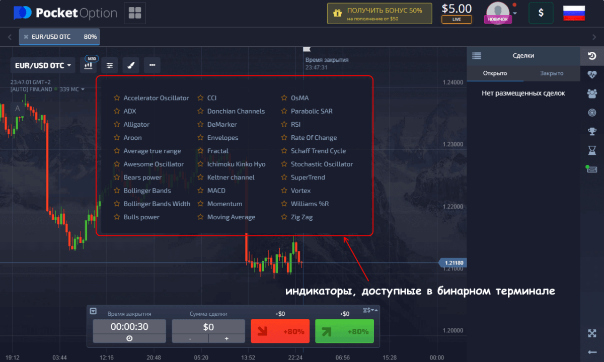 Если индикаторов на платформе БО недостаточно, то анализ проводим в обычном MetaTrader4(5)/