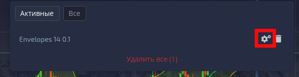 Переходим на вкладку «Активные». В строке «Envelopes» нажимаем на шестеренки.