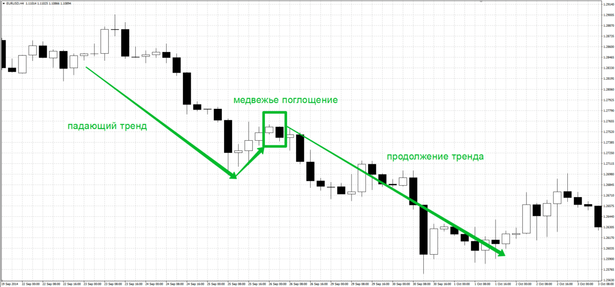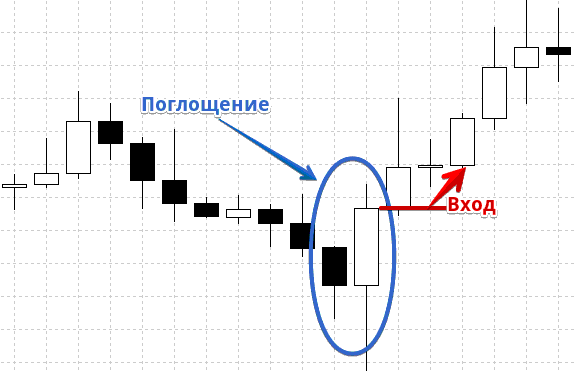 Стратегия свечное поглощение — простой и мощный паттерн ранней идентификации смены вектора графика. Чем больший период времени используется, тем выше потенциальная прибыль при грамотной идентификации и своевременном открытии позиции. Использовать правила легко и при торговле в автоматическом режиме — достаточно заложить всего несколько простых входных данных, и робот готов к работе. Неоспоримый плюс — в том, что для идентификации могут использоваться любые индикаторы из широкого списка инструментов. Более подробно вспомогательные инструменты описаны в соответствующем разделе нашего сайта.